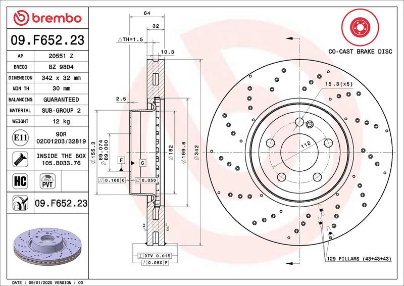 • Bremsscheibenart: gelocht/innenbel.