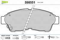 Bremsbelagsatz, Scheibenbremse VALEO 598551