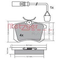 Bremsbelagsatz, Scheibenbremse METZGER AUTOTEILE 1170174