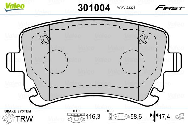 Bremsbelagsatz, Scheibenbremse VALEO 301004