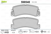 Bremsbelagsatz, Scheibenbremse VALEO 598540